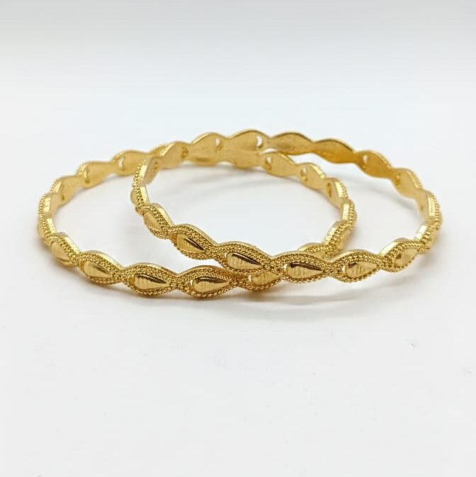 Intricate Teardrop Design: Each bangle features a continuous, repeating pattern of finely crafted teardrop or pendant-shaped motifs. This unique design gives the bangles a delicate, lacy, and eye-catching appearance.