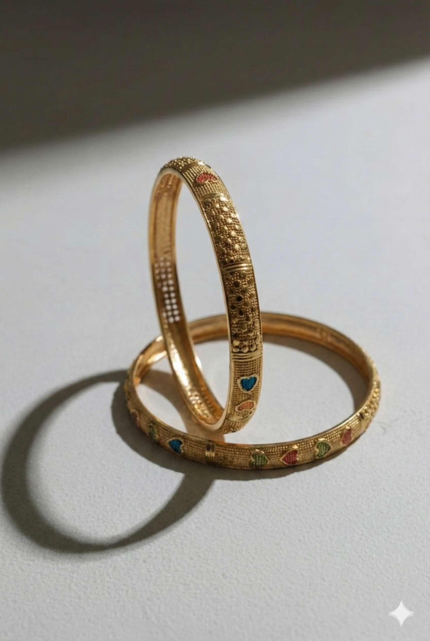 These exquisite bangles combine classic elegance with intricate craftsmanship, making them a perfect accessory for both traditional and contemporary outfits.